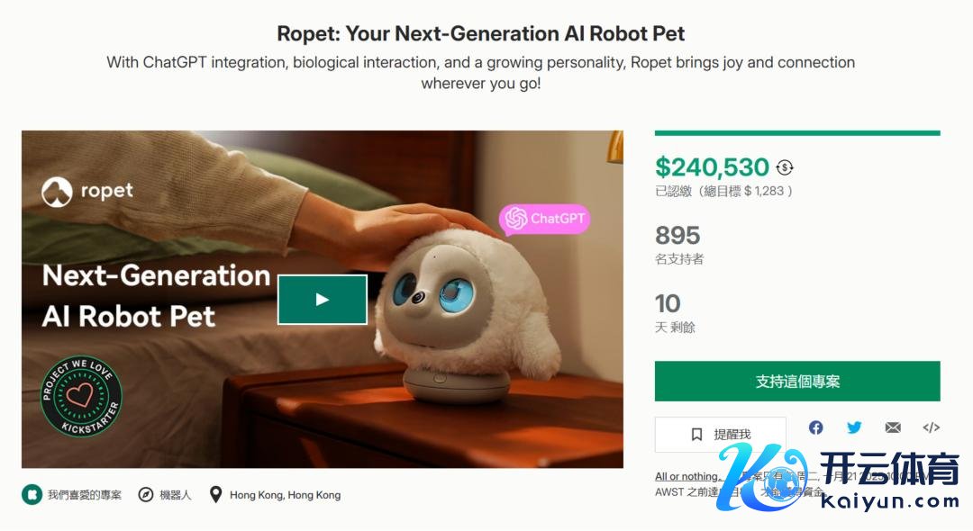 阻挡发稿日12时,Ropet在众人最大的众筹平台Kickstarter上已众筹超24万好意思金(约合东谈主民币176万元),远超设定金额的180多倍,且金额还在快速加多,此时距离筹款扫尾还有10天。