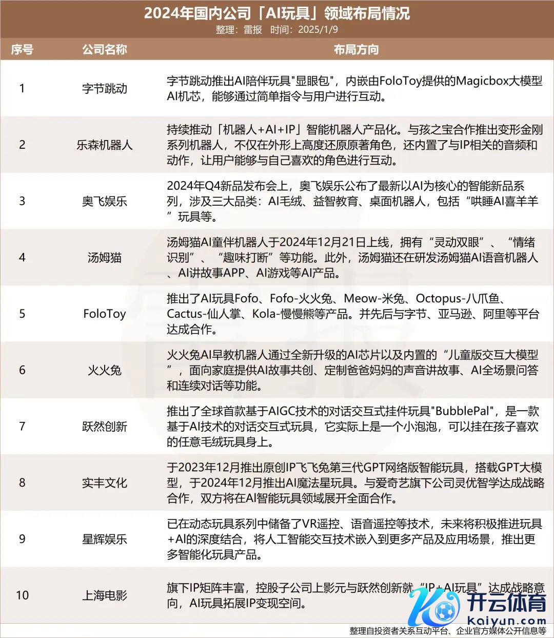在CES除外,雷报通过进一步整理国里面分公司在AI玩物界限的发展情况后发现,2024年于今,中国企业推出的AI玩物中,出圈的也有不少,但基本齐面向的是未成年用户。