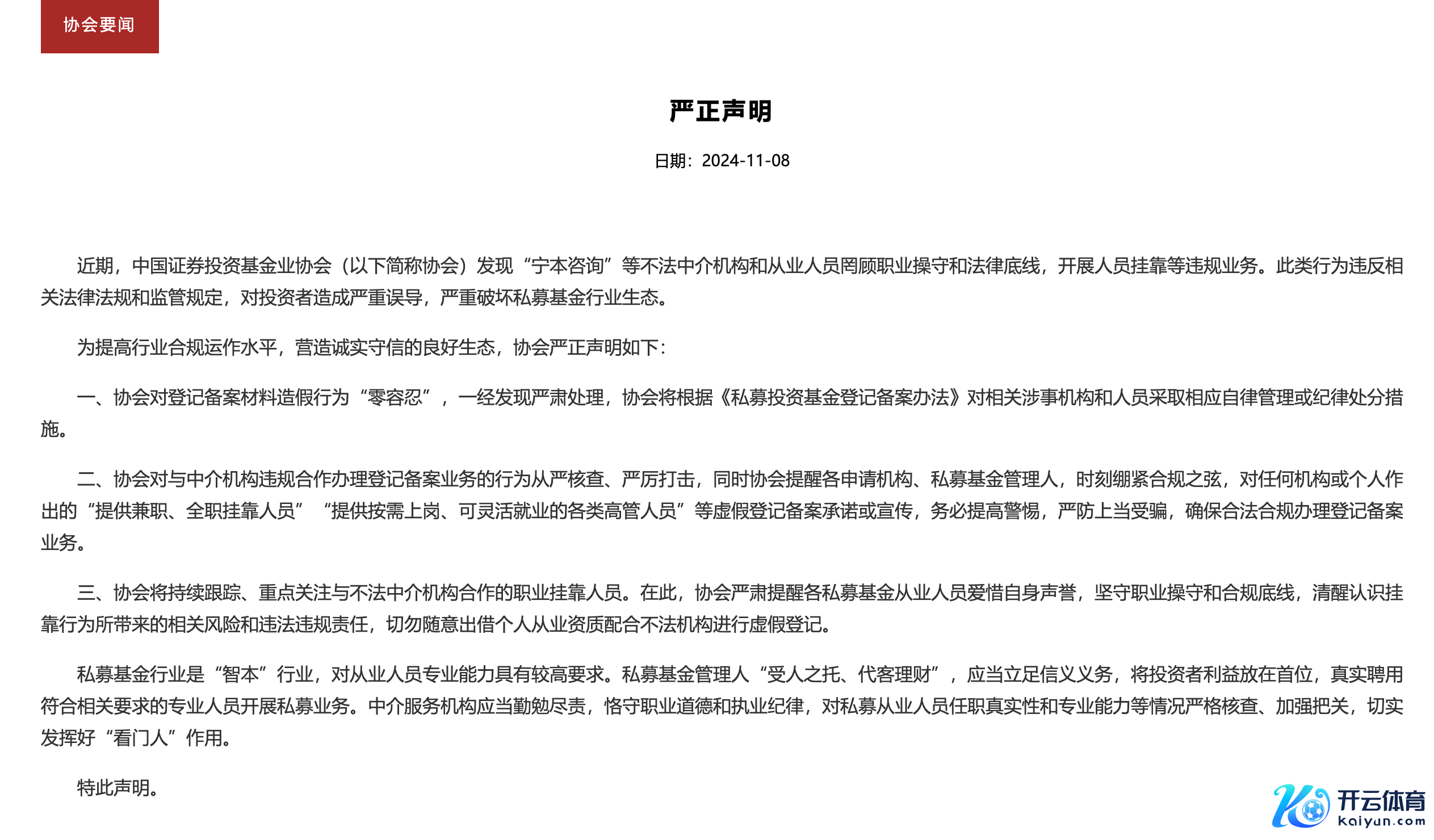 中基协:对登记备案材料作秀手脚“零容忍”,仍是发现严肃措置中基协:对登记备案材料作秀手脚“零容忍”,仍是发现严肃措置