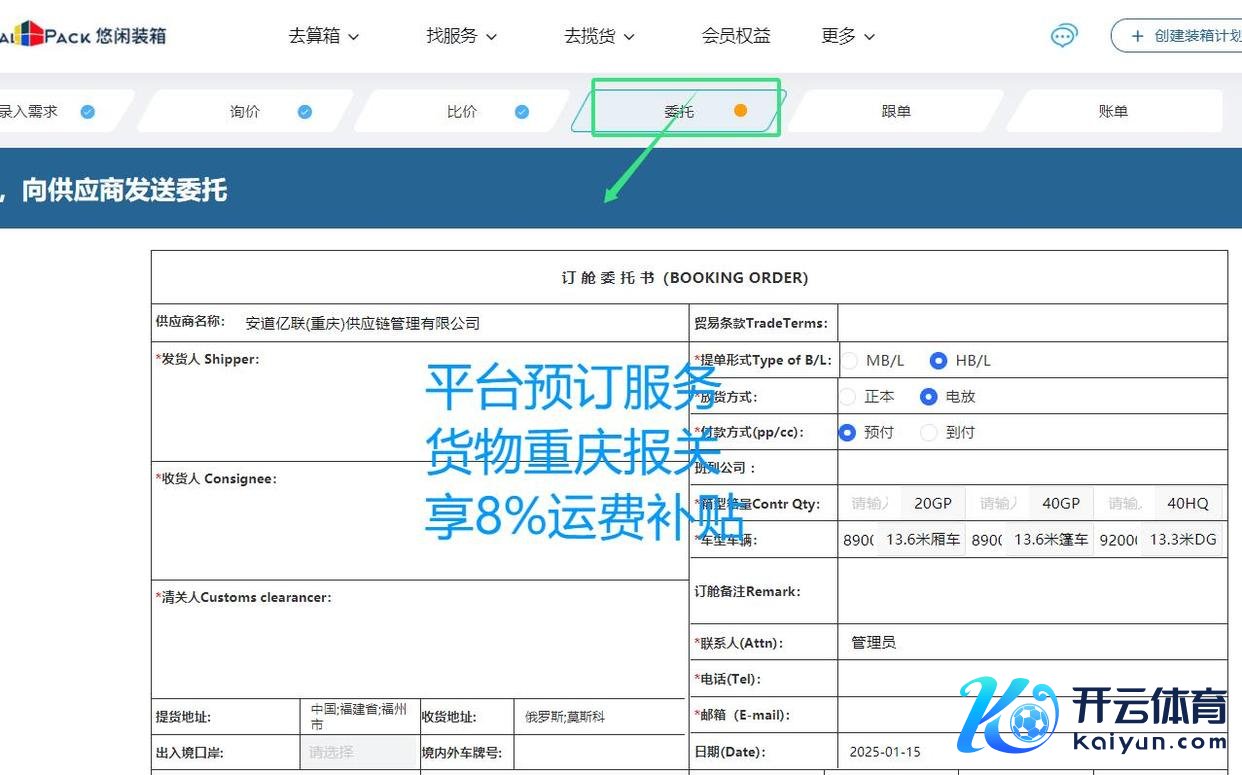 TIR跨境输送以其通关浅近、时效高、安全性强的特色开云体育(中国)官方网站,成为国外营业中弗成或缺的物流形貌。通过选拔专科的处事平台如发放装箱平台,企业不错享受到全程无忧的TIR输送处事,栽种效果。